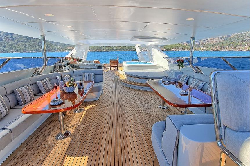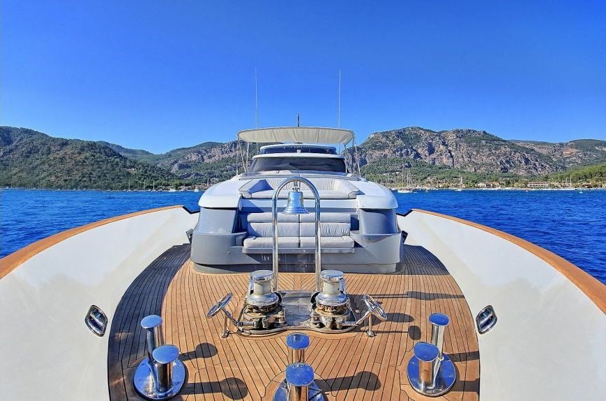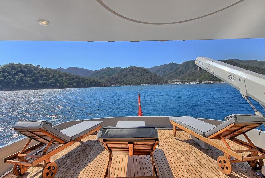 This motor yacht, which attracts our guests with its stylish, high-quality, and modern design, has a total of six cabins. Accommodation for a maximum of 12 people.