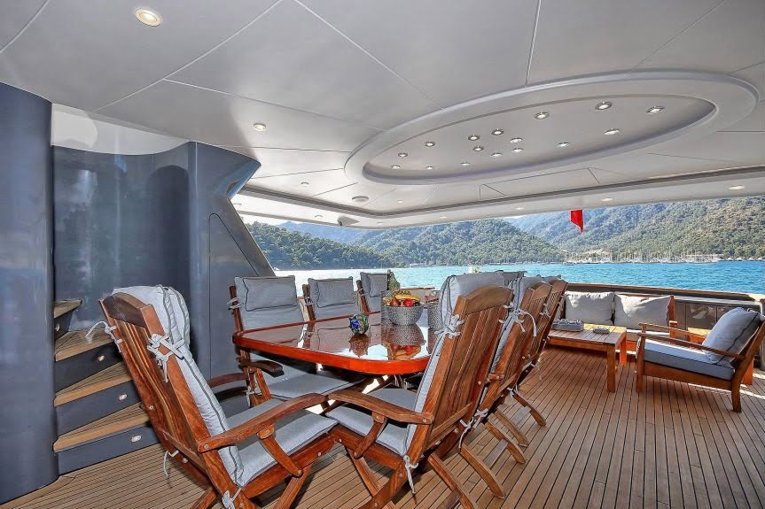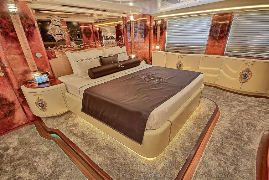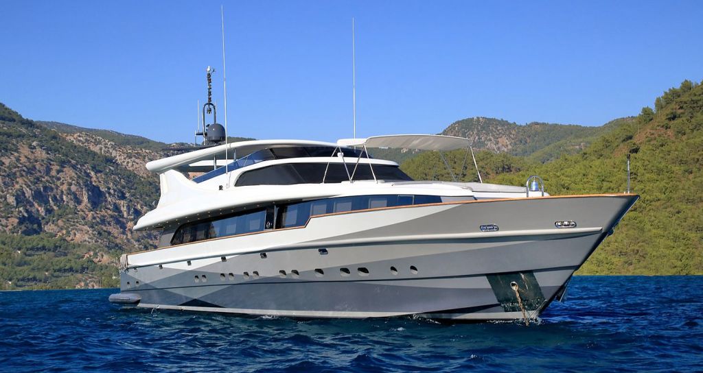 The motor yacht is moored in Bodrum. It is 43 meters long and 8.50 meters wide.
